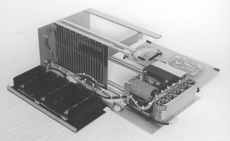 ![]() | The CMI cardcage during assembly, showing the large power supply heatsinks - switchmode supplies were yet to be invented. |