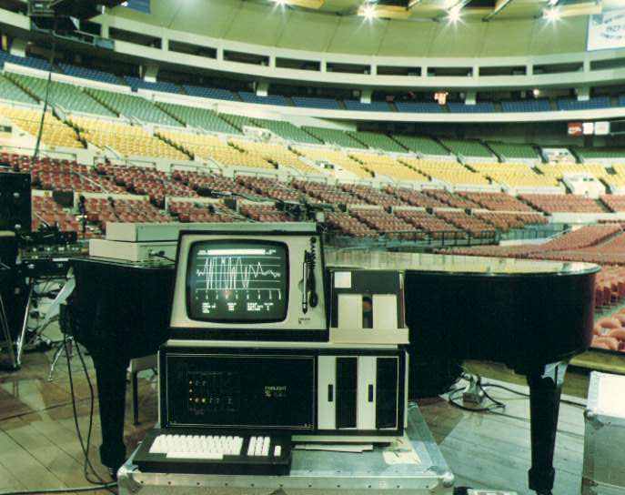 ![]() | The Fairlight on stage at Maddison Square Garden, New York City, after the sound-check for a Stevie Wonder concert, part of his "Secret life of plants" tour. |